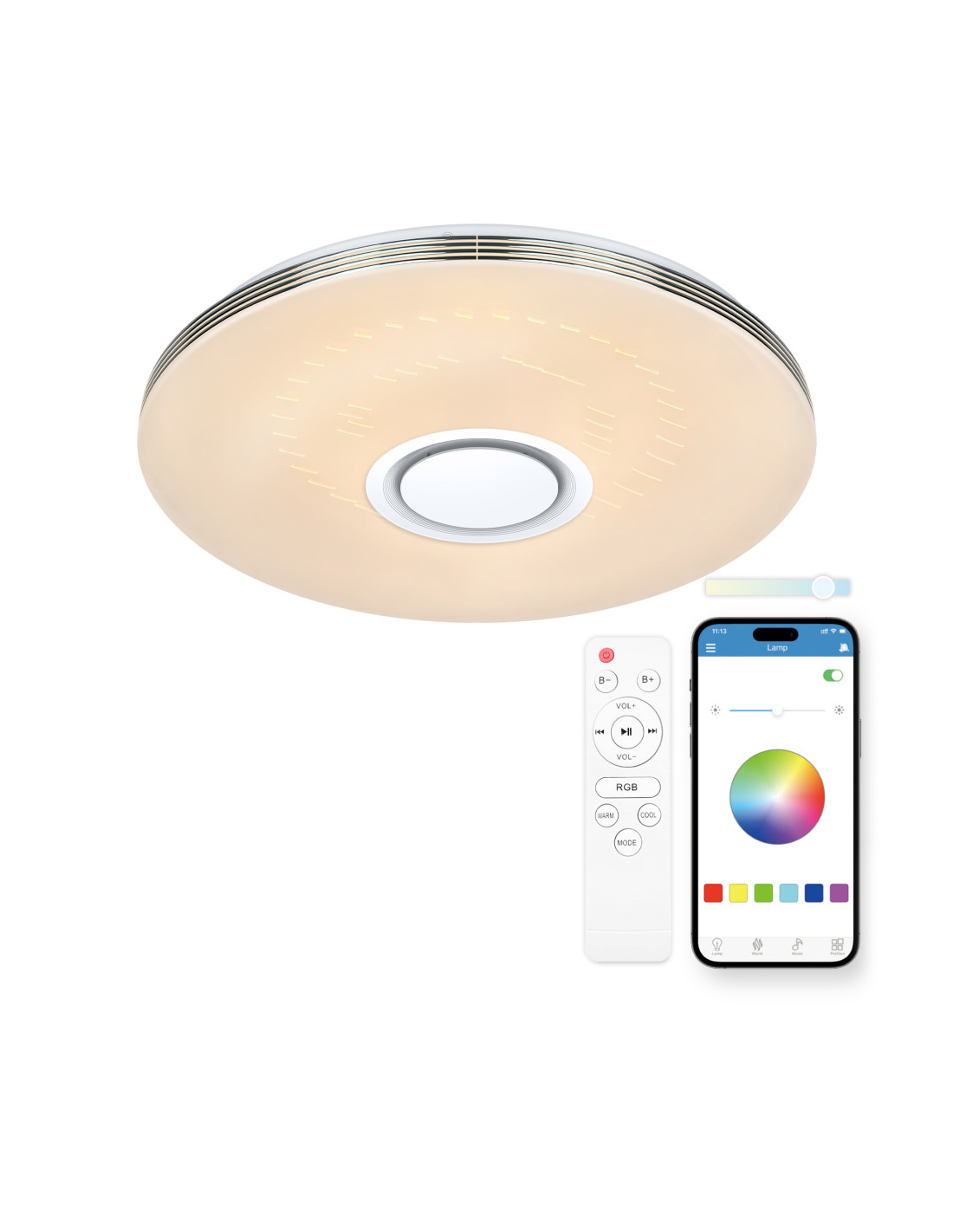 With the iLink app, you will have total control of the ceiling light in your hands. Select colors, sync lighting and music, choose from a variety of scene modes, set timers and more. It incorporates Wireless 4.0, always ensuring a stable connection. In addition, it includes a remote control with which you can control the lighting of the ceiling light in a more analogue way when you do not have your phone at hand.