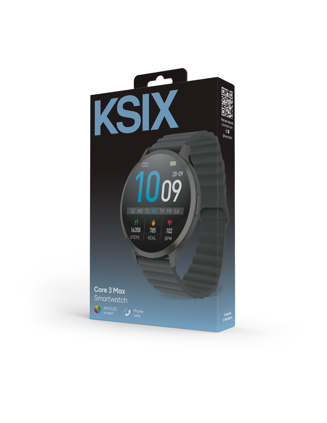 Core 3 Max is easily managed via the KSIX Plus app, where you can check your data and personalise your experience at your own pace. It is compatible with Android® and iOS® smartphones and allows you to sync information with Apple® Health, Google® Health and external apps such as Strava.