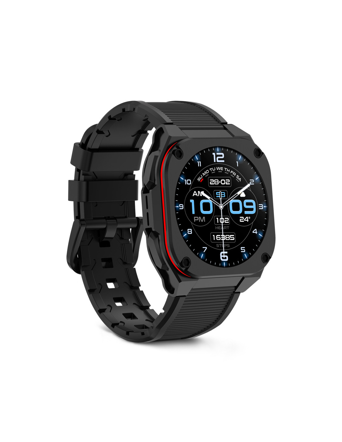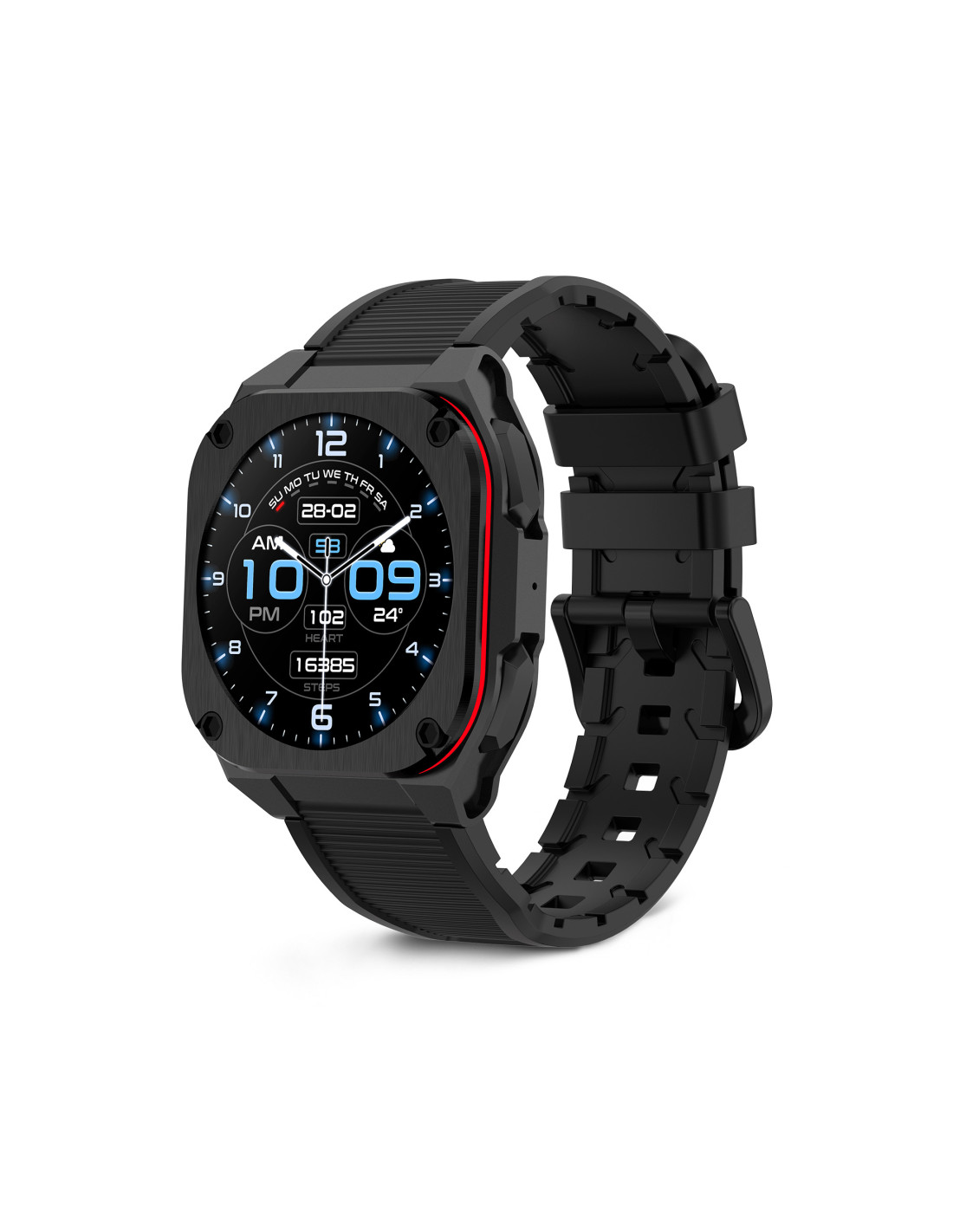 Zenthium is a smartwatch with a strong personality and a design that stands out from the conventional. Its square format, inspired by aviation watchmaking, brings character and a distinct identity from the very first glance. The AMOLED display ensures sharp and easy-to-read visuals at any time of day, enhancing the experience in your daily routine. Lightweight and comfortable, it is designed for those who seek design, smart functions and a balanced experience, with a style that speaks for itself.