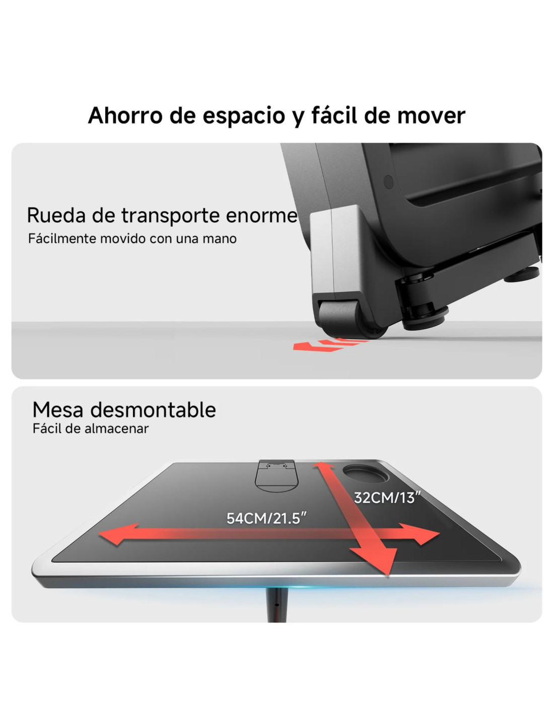 Includes a stable work surface that is easy to attach or remove depending on your needs. It features support for a laptop or tablet and an integrated cup holder, designed to create a comfortable setup while staying in motion. A practical solution for those looking to optimise space and combine productivity with physical activity without compromising on comfort.
