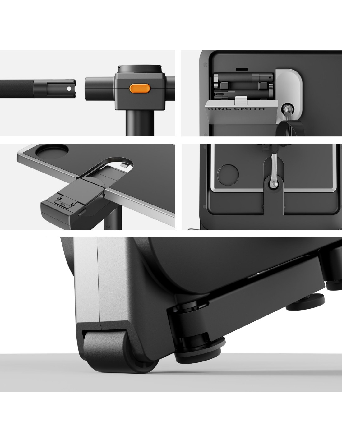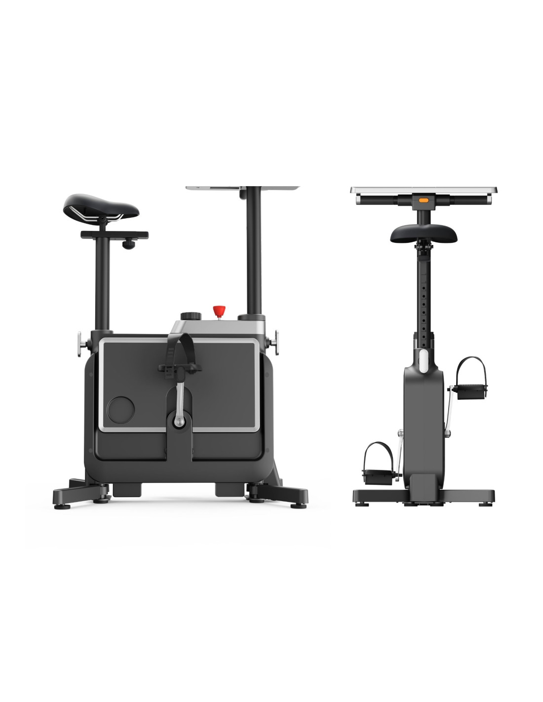Incluye una superficie de trabajo estable, extraíble y fácil de colocar o retirar según el uso. Cuenta con soporte para portátil o tablet y posavasos integrado, pensada para crear un entorno cómodo mientras te mantienes en movimiento. Es una solución práctica para quienes buscan optimizar el espacio y combinar productividad con actividad física sin renunciar a la comodidad.