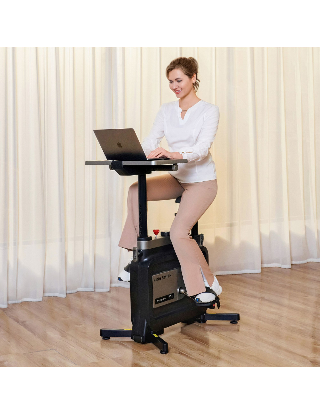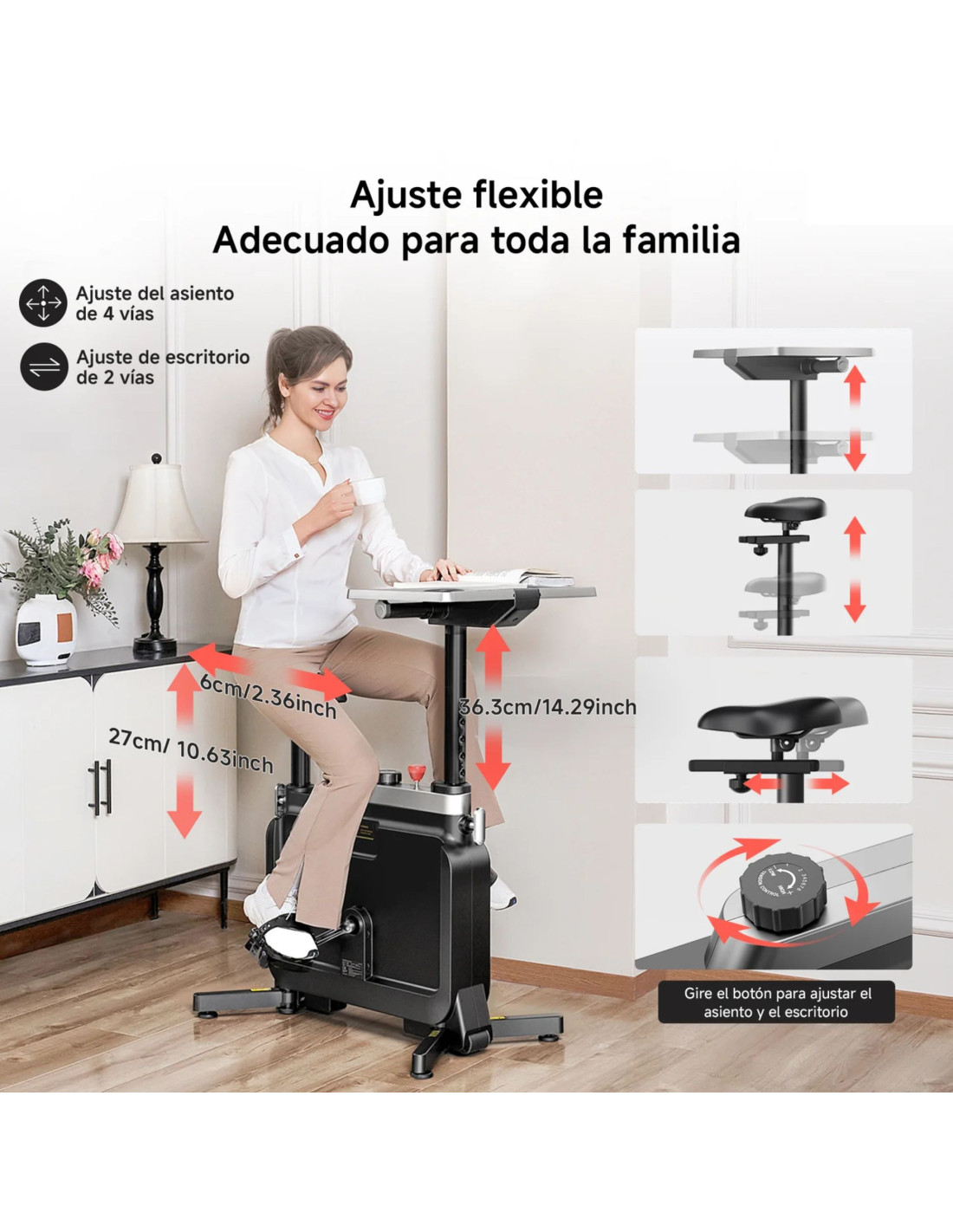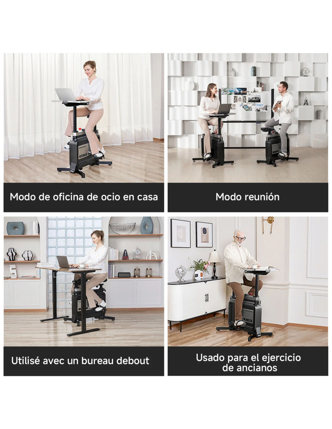 Su diseño permite adaptarse a diferentes usos según el momento del día. Puedes utilizarla como bicicleta estática tradicional para sesiones más activas o en formato bajo escritorio para un pedaleo continuo y ligero. Esta versatilidad facilita integrar el ejercicio en distintos contextos, ya sea trabajo, ocio o entrenamiento.