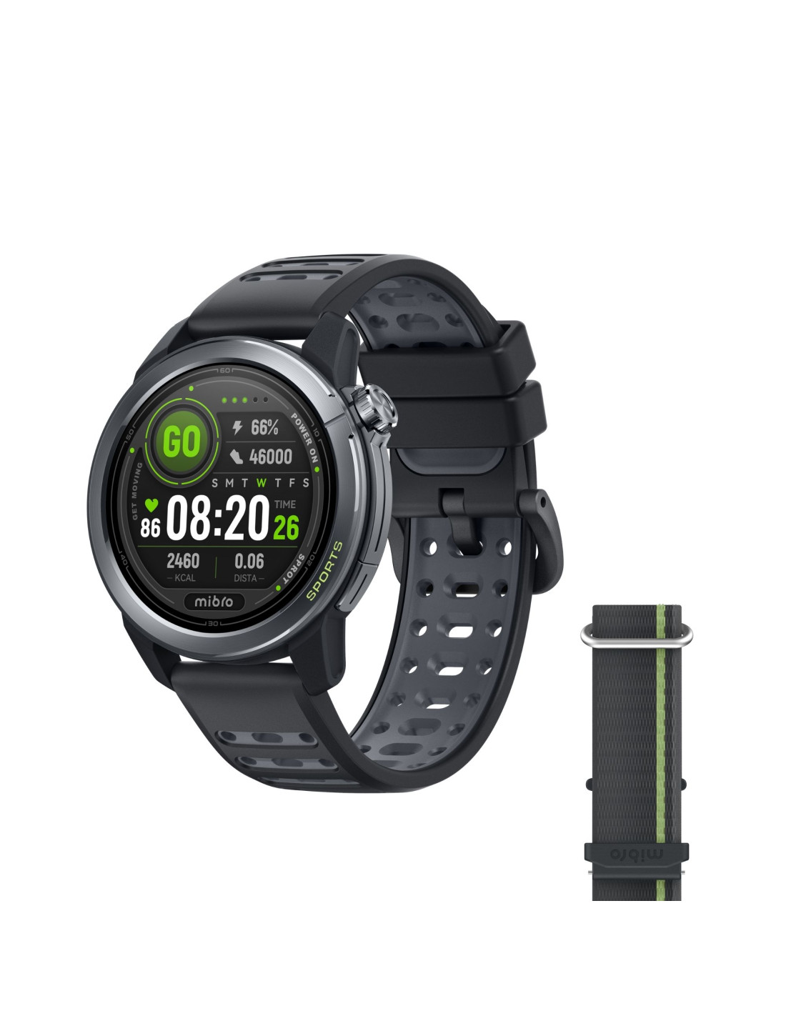 Su pantalla táctil AMOLED de 1,32” ofrece una visualización clara incluso a plena luz del día. El cuerpo del reloj, ligero pero resistente, está diseñado para acompañarte cómodamente durante todo el día y la noche.