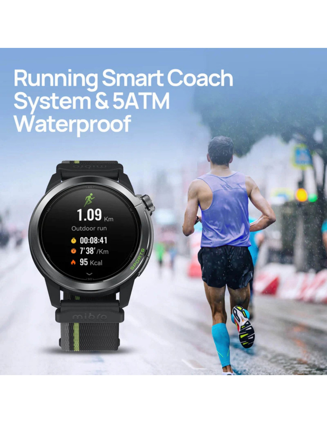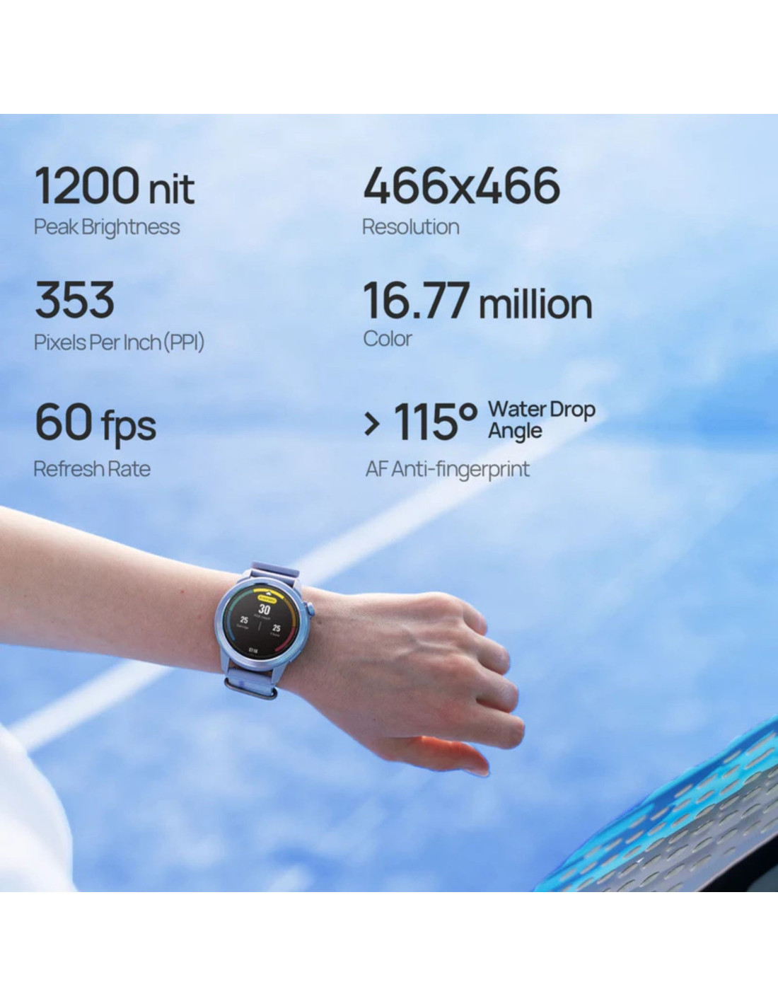Su pantalla táctil AMOLED de 1,32” ofrece una visualización clara incluso a plena luz del día. El cuerpo del reloj, ligero pero resistente, está diseñado para acompañarte cómodamente durante todo el día y la noche.