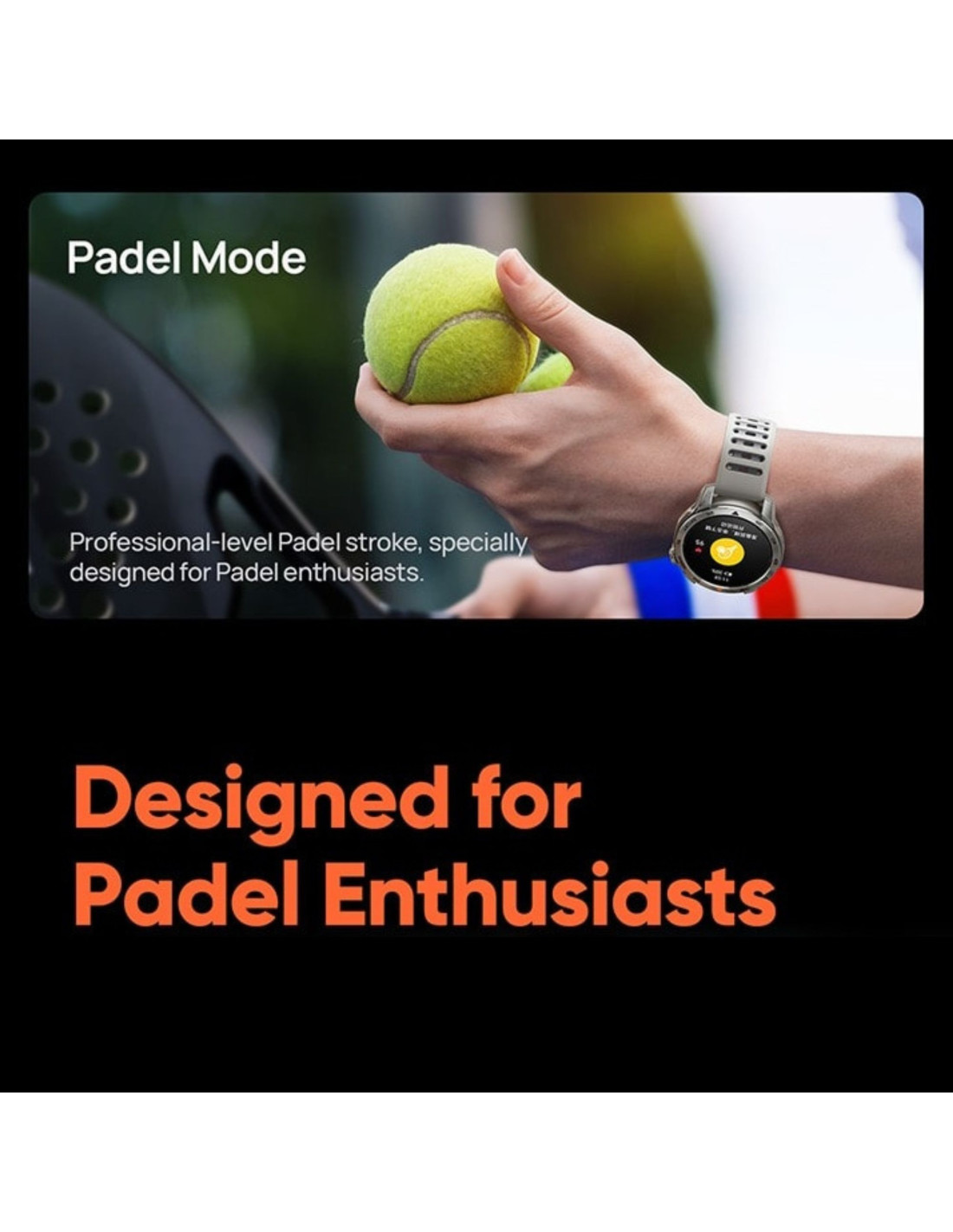 El Mibro smartwatch GS Pro 2 te acompaña en cada aventura. Su GPS de doble frecuencia con brújula y barómetro te ofrece una precisión extrema en montaña, mar o desierto. Incorpora en exclusiva un modo pádel de última generación que ofrece un análisis técnico con precisión de milisegundos, ideal para entender mejor cada movimiento. Gracias a su matriz de datos en 6 dimensiones, monitoriza postura, velocidad y ritmo de juego en cuatro fases clave, siendo una herramienta potente para quienes buscan mejorar su rendimiento tanto en entrenamientos como en competición. Accede a más de 150 modos deportivos, controla tu salud en tiempo real y no pierdas la conexión estés donde estés. Además, disfruta de su pantalla AMOLED 1.43” visible bajo el sol y el agua, resistencia 5 ATM y batería de hasta 20 días.