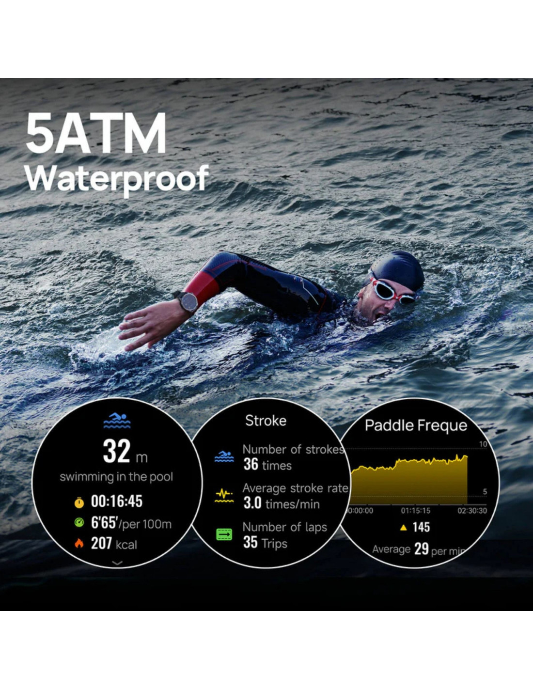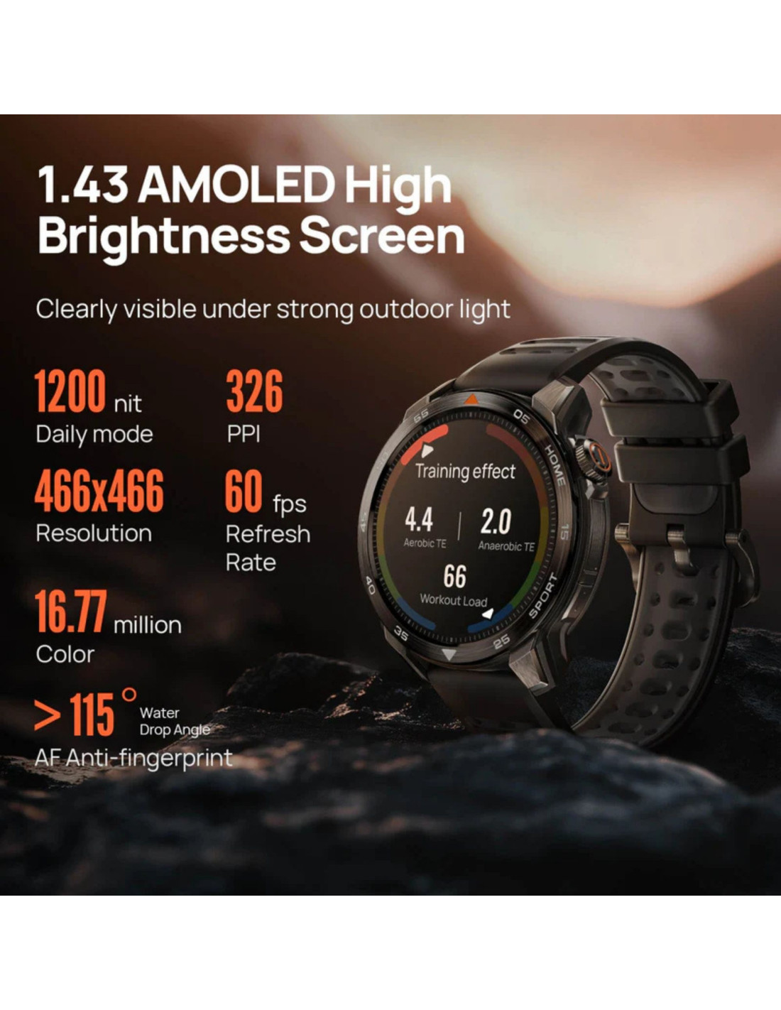 ¡La visión no se queda atrás! Mira cada detalle incluso bajo el sol gracias a su pantalla AMOLED de 1.43”, con resolución 466x466 píxeles y brillo máximo de 1200 nits. Además, tiene un revestimiento de antihuellas AF y permite el contacto dentro del agua.