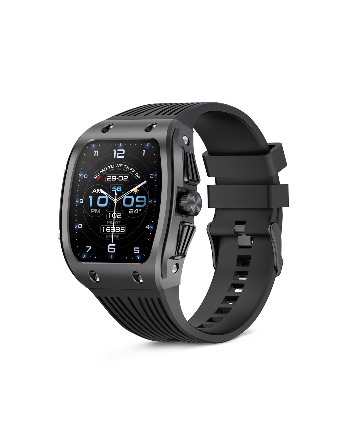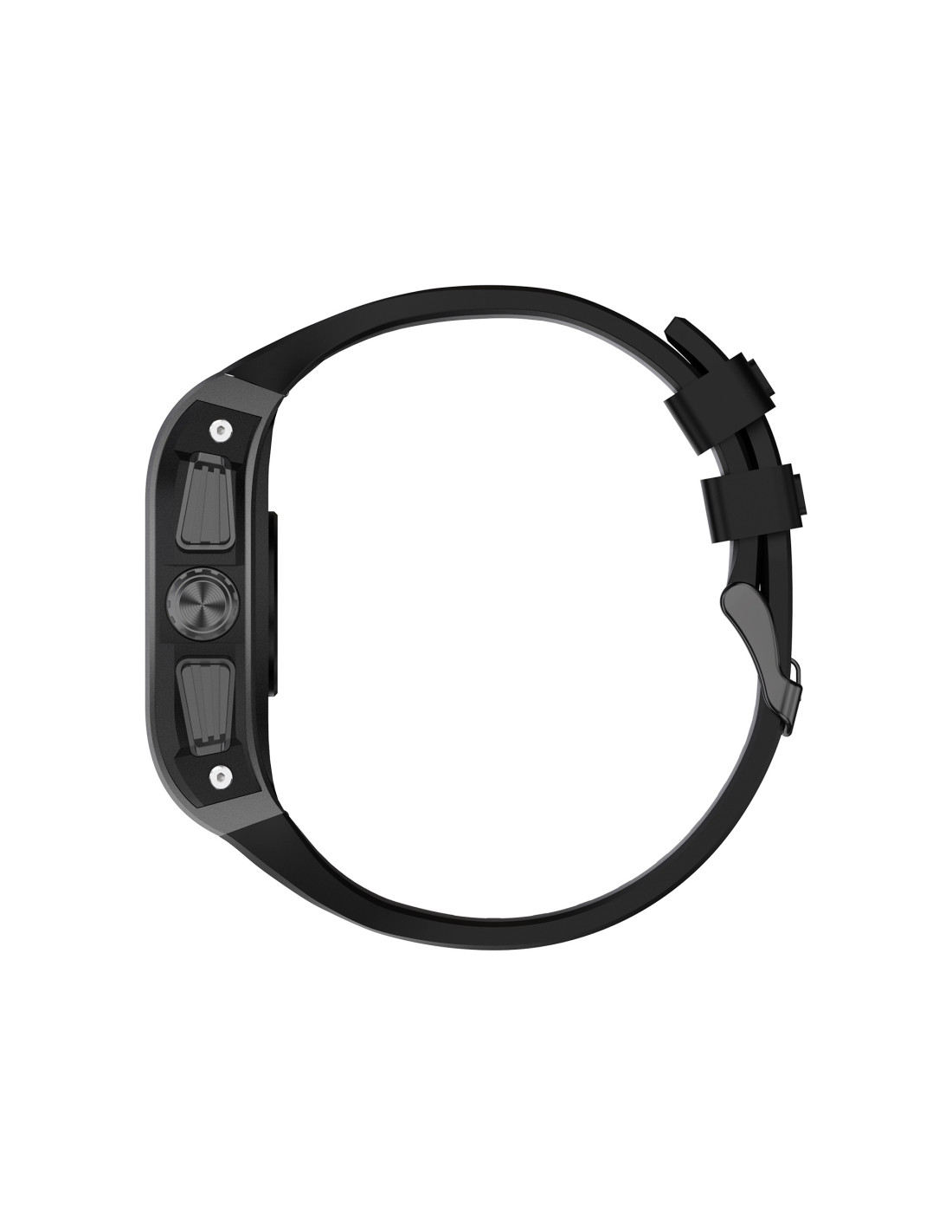 Hero 2 apuesta por una pantalla curva de formato ovalado y un diseño contundente que se hace notar desde el primer vistazo. La estructura se ha afinado para ofrecer una sensación más limpia y actual, manteniendo una estética sólida y bien definida. La caja de aleación de zinc transmite robustez, mientras que los botones laterales grandes facilitan el uso incluso en movimiento. La correa de silicona gruesa aporta una sujeción firme, cómoda y estable en movimiento.